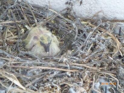 南校舎の外に、かわいいハトの雛が誕生していました。