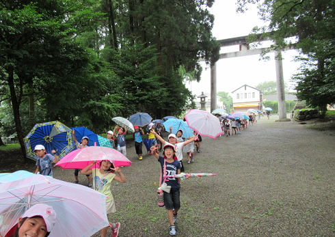 【雨の中みんなで歩くのも楽しいね】