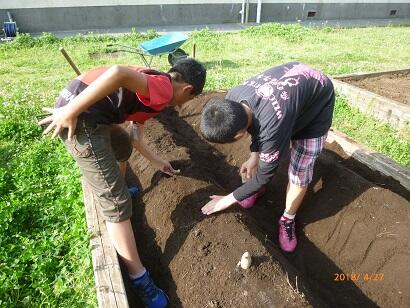 6年生が「植物の光合成実験」のために育ててきたジャガイモ。