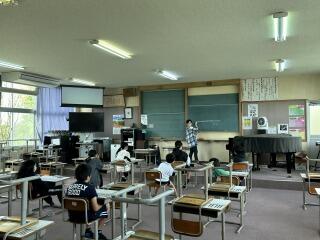 この時間、音楽室で授業を受けていたのは3年生です。本校では、3年生から音楽室で音楽専科の先生と音楽の学習をします。