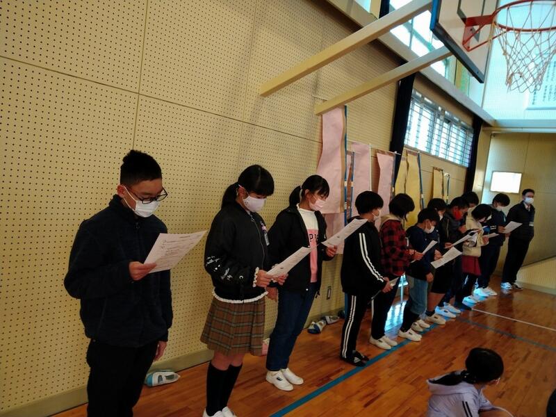 今朝は今年一番の冷え込みでした。その中、12月4日から始まる人権週間に先立って、体育館で人権集会を実施しました。この集会へ向けてそれぞれの学年で考えた人権の標語を、クラスの代表が発表し合いました。どれもとても素晴らしいもので、気温は低かったものの、これらの言葉で心が何となく温かくなりました。これらの標語は、計画委員会の人たちが登り旗にして、児童玄関へ向かう通路に立てることになっています。毎朝、これらの標語を見ながら、一日のすがすがしいスタートを切ることができますね。