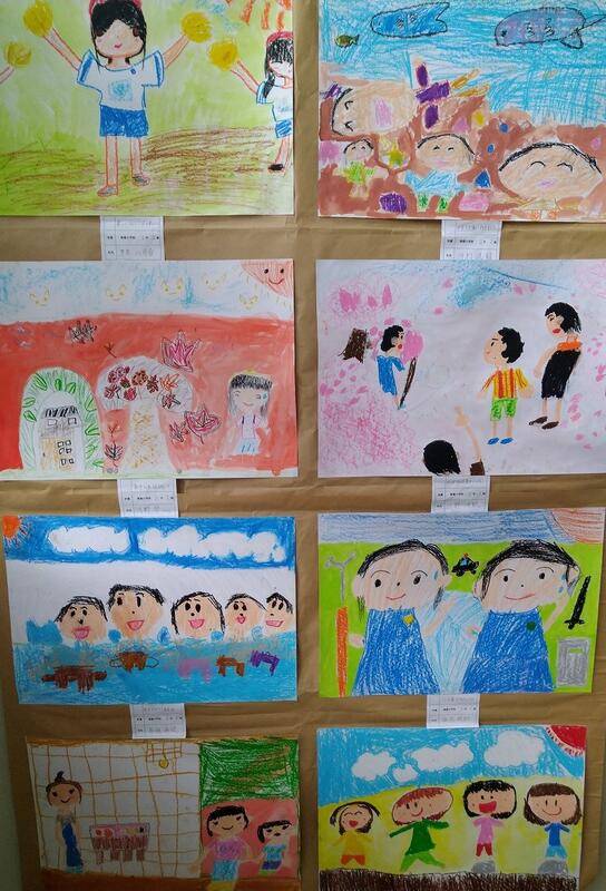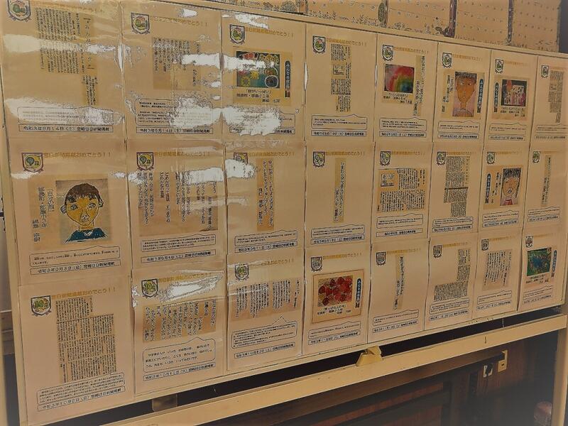 都農ワイナリー25周年記念「子どもと都農ワインのコラボレーションラベル作品」を見に行きました。本校は入賞者は居なかったものの、応募した絵が他の学校園のみんなとともに、店内に飾られていて、たくさんの笑顔の作品を見て、心がほっかりしました。こういう地域、いいですね。