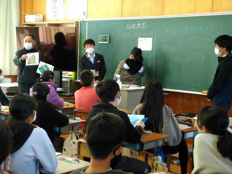 先日、役場の方に来ていただき、6年生対象に租税教室を行いました。知っているようで知らない税のしくみについて、「学校、商業施設などを建てる時には、税が使われているのはどれですか?」といったクイズ形式で、具体的に教えていただきました。身の回りのたくさんのことに税金が使われていることを学んだ時間となりました。