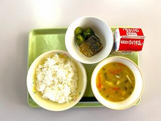 今日は冬至メニューとして、かぼちゃの団子汁とさばのゆずみそ煮を出しました。さばがしばらく品薄だったので、さばの煮物は今年度初めての登場です。ゆずの香りとみそとの相性が抜群ですね。