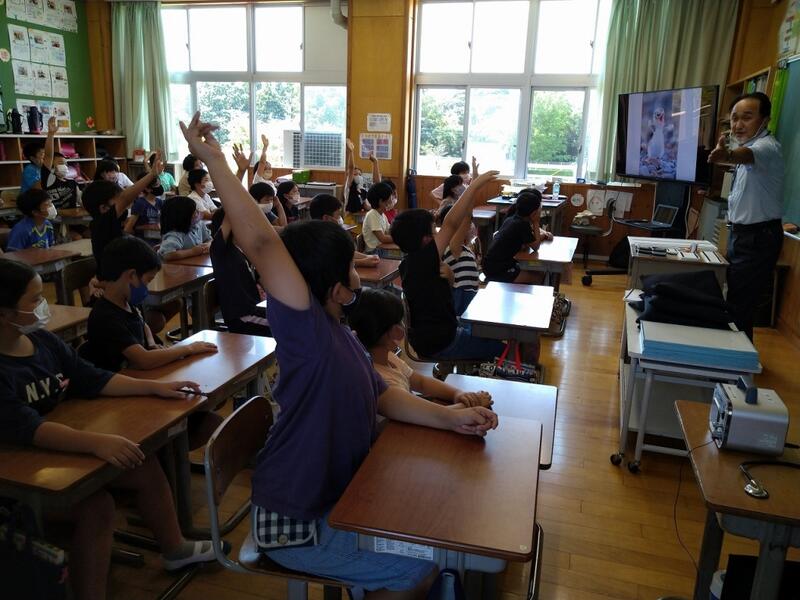 今日の3校時、4年生対象にいのちの授業がありました。みやざき動物愛護センターの方が2名来られて、「人と動物とのつながりを学び、いのちについて考えよう」をテーマに心で考える1時間でした。実際に聴診器を当てて生きている実感を味わいながら、①今から30代さかのぼると1億人以上の命の関わりがある②あなた自身がいなくなったらこれからの命をつなぐことができなくなる などの学びを得ることができました。秋には実際にみやざき動物愛護センターへ行って学びます。かけがえのない命について、時には楽しく時には真剣にしっかりと考えることができました。