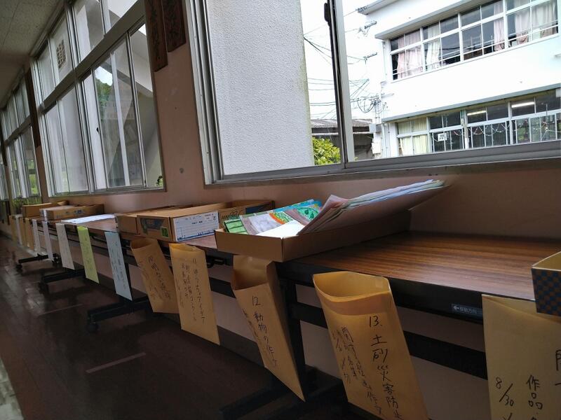 職員室前廊下に、夏休みの宿題の提出スペースが準備されています。5日の登校日に提出された作品はすでにここに置かれています。夏休みもあとわずか。ひょっとしたら今必死に課題に取り組んでいる人もあるかも…。30日には心も体もそして課題も、しっかり整えて、元気に登校してくださいね!