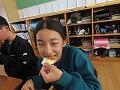 では、持久走記録会後、しかも、午前中5時間、お腹ペコペコ、おいしそうに給食をほおばる子ども達の様子をご覧ください。