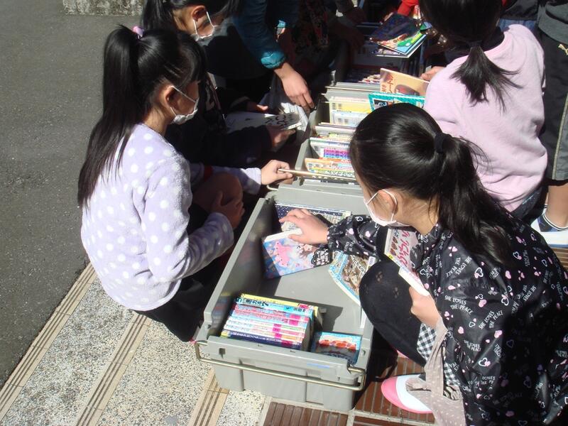 ずっと読みたかった本を見つけて嬉しそうに手に取る児童、普段あまり図書館に行くことができないから・・・と、どの本にするか迷いながら選んでいる児童、みんな楽しそうに本を選んでいました。
