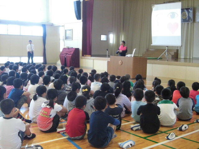5月11日(水)の朝の時間に、今年度の読み聞かせボランティアの方との顔合わせのための集会がありました。子どもたちは、2週間に1回程度の「お話広場」をとても楽しみにしています。ボランティアの方から、いろんな本を読んでもらい、本の世界へ引き込まれています。