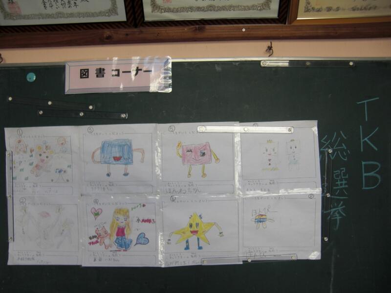 10月26日から10月30日までの1週間、図書室では、【T図書室 Kきてね Bブックキャラクター 総選挙】、略してTKB総選挙が行われています。以前、図書室に来た子どもたちにキャラクター募集をしました。その中から、図書委員会の子どもたちが選んだ8つのキャラクターが今回の総選挙にエントリーされています。このTKB総選挙は、「図書室をもっと身近に感じてほしい」という思いから開催されています。