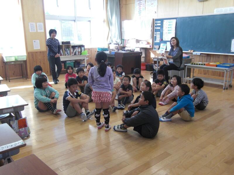 絵本に出てきたキャラクターの色を英語で答えるクイズでは、正しく答えることができる子どもたちにティール先生も感心していました。