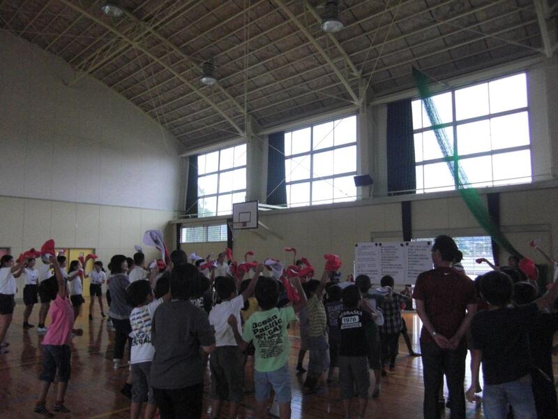 2回目の練習ということもあって、自信を持って大きな声を出している子どもがたくさんいました。子どもたちはこの時間を心待ちにしているようで、楽しそうに、体を思いきり動かして応援の練習をしていました。リーダーが考えた応援は、最近の“お笑い”を取り入れたユニークで、低学年の子どもたちが喜んでやるようなものにバージョンアップしていました。