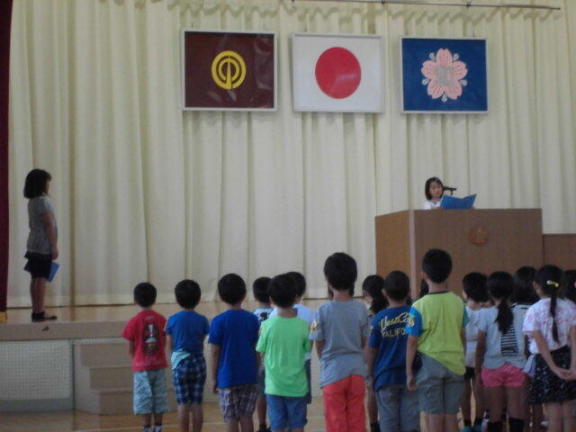 1学期の終業式が行われました。はじめに、校長先生から「おすずっ子『3つのがんばり』と『校長先生からの夏の宿題』」をテーマにしたお話がありました。(詳しくは、”校長室から”を参照ください)