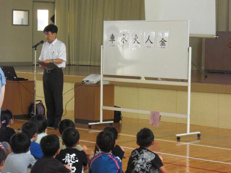 今日は、業間の時間に夏休みの過ごし方について全校集会を行いました。夏休みを楽しく過ごすために、気をつけたり、守ったりしなくてはいけないこと、「車・水・火・人・お金」について子どもたちと一緒に考えていきました。