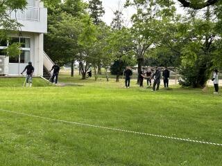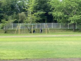 プール横にあるサッカーのミニコートの方からにぎやかな声が聞こえてきました。覗いてみると…
