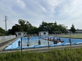先生方は6月11日に予定されているプール開きに備え、PTA理事の皆さんとプール掃除の仕上げをされました。