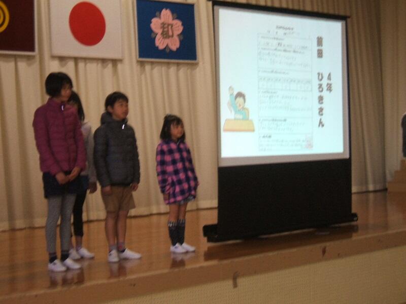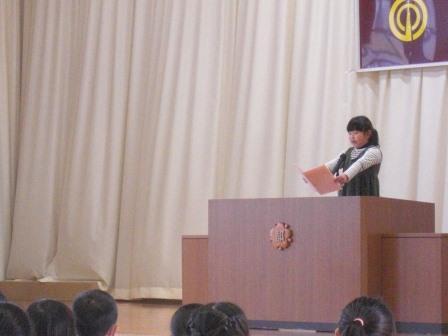 その後、2年生の代表児童2名による作文発表がありました。2学期に頑張ったこと、これから頑張りたいことを、語尾まではっきり、堂々と発表することができました。