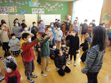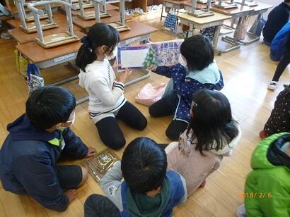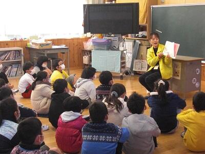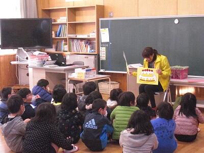 今回は、新年を迎えたばかりということで、干支についての絵本や今年の干支である“犬”が登場するお話がたくさんありました。各学級の様子を写真で紹介します。
