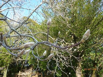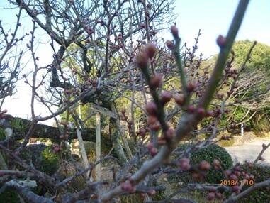 【梅の枝から芽が出てきている!春の準備をしているんだ!】