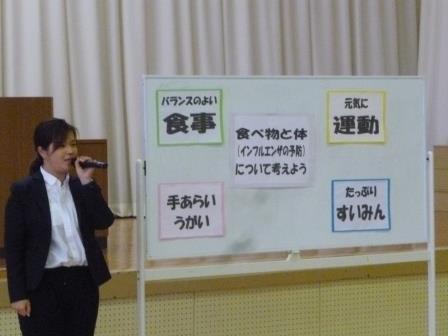いよいよ3学期のスタートです。1月の月目標は、「食べ物と体(インフルエンザ予防)について考えよう。」になっています。「手洗い・うがい」「たっぷり睡眠」「バランスのよい食事」「元気に運動」の4つの柱で体調を整え、元気に楽しい学校生活を送ってもらいたいです。