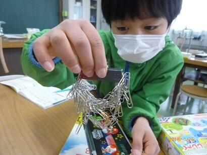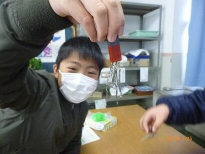 磁石を渡すと子ども達は大喜び。目をきらきら輝かせながら、いろいろな物をくっつけていました。