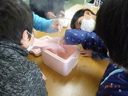 特に、あわがさかんに沸き立つ「ふっとう」状態になると、子ども達は驚きと、感動の声を上げていました。