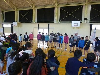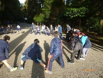 【みんなでアップ。元気なあいさつもしっかりできていました!】