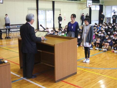 表彰では、それぞれの強化ですべて100点を取った「パーフェクト賞」の子どもたちや、「K-1」「S-1」で100点を取った子どもたち、「おそうじ名人」の子どもたち、作品展で賞をとった子どもたち、残食を一度もしなかったクラスなど、たくさんの子どもたちの頑張りが紹介されました。