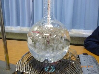 実験用ガスコンロを使って、とことん熱し続けていきました。