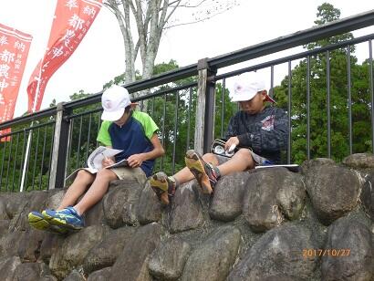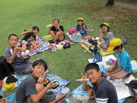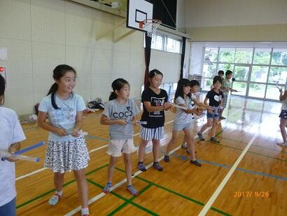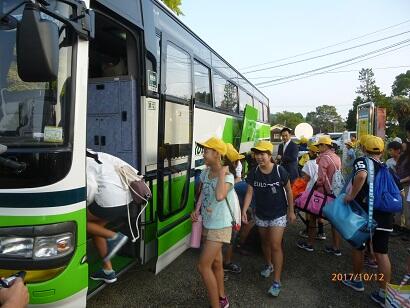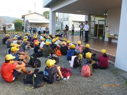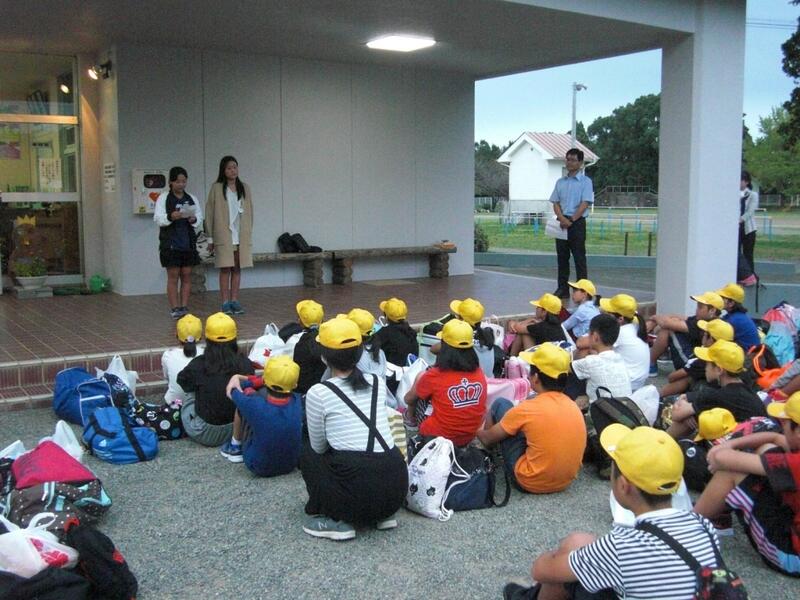 途中で、南小と東小、内野の分校の4年生と自己紹介をかねて名刺を交換したり、ゲームをしたりして楽しく交流しました。