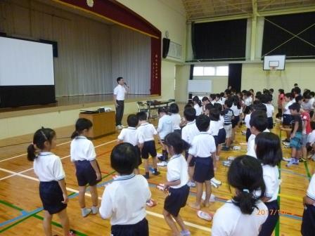 校長先生の話は「体力アップ大作戦」です。NHK「ためしてガッテン」で紹介されていた簡単に体力アップできる2種類の体操を教えてくださいました。詳しくはお子さんにお聞きください。親子でやってみるといいですね。