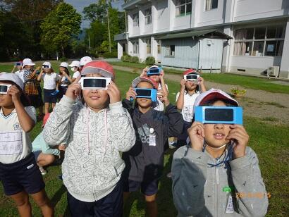 最後に「日食」について説明した後、日食を利用すると「地球から太陽までの距離を出すことができる」という体験をさせました。