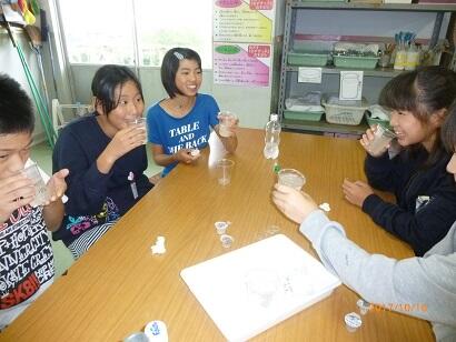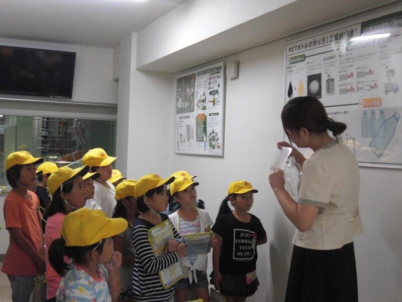 はじめに、水道課の方に飲料水について、住民課の方にゴミの処理について説明をしていただきました。次に、店内を見学し、駅長さんから都農町ならではの販売の工夫や商品開発についてのお話をお聞きしました。子どもたちの事前の質問に丁寧に答えてくださいました。
