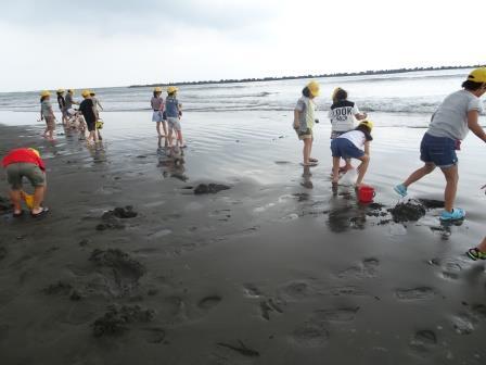 子ども達は、「うね雲」「ひつじ雲」「おぼろ雲」「入道雲」「雨雲」たくさんの雲を発見し、感動の声を上げていました。また、「雲は西から東に動いている」ということも発見していました。