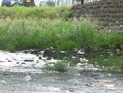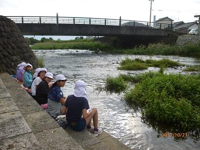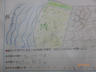 この日は、実際に川に行って、内側と外側の流れの違いを調べました。