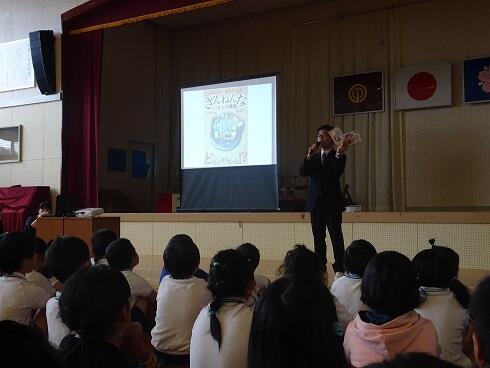 校長先生のお話では、今泉忠明さん監修の「ざんねんな 生き物事典」(高橋書店)の本を使って、様々な生き物についての紹介がありました。「コアラは、なぜ、一日中寝ているのか」「蚊はなぜ人の血を吸うのか」など、子どもたちの身近な生き物たちの行動の秘密についてのクイズがあり、子どもたちは生き物の行動にとても興味津々の様子でした。他にも、フラミンゴやリスなどたくさんの生き物の行動の秘密が載っているので、興味のある方はお子さんと一緒に読んでみてはいかがでしょうか。