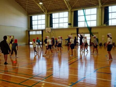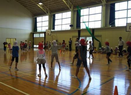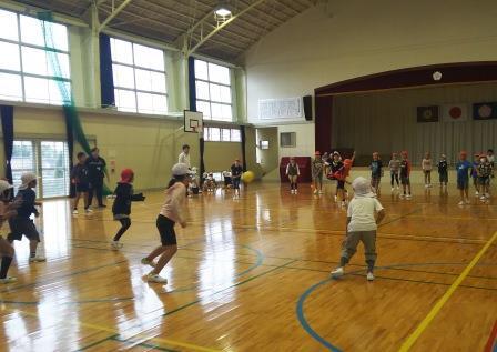 第1試合は外野の人数が1人差で2組が、第2試合は5人差で1組が勝ちました。決着はつきませんでしたが、悔しがる様子もなく、勝てたことを喜ぶ子どもたちでした。