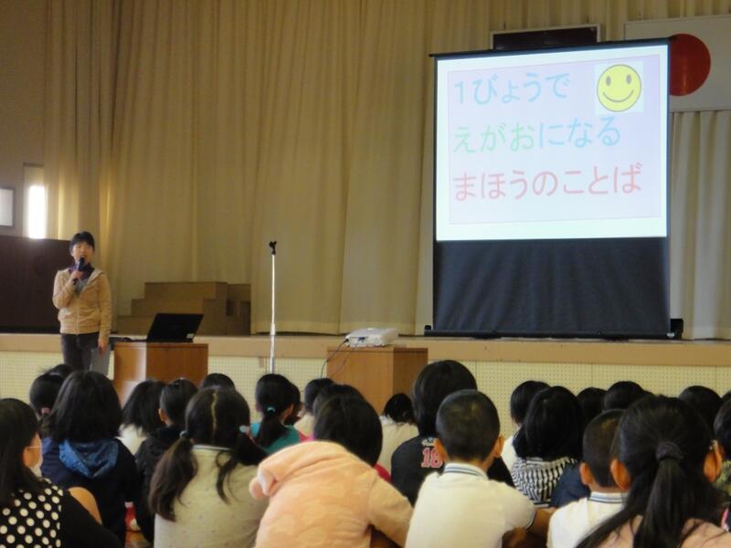 その後、12月の月目標である「友達に対して思いやりのある言葉かけをしよう。」についてのお話がありました。“1秒で笑顔になる魔法の言葉(ふわふわ言葉)”の大切さについて、みんなで確認することができました。