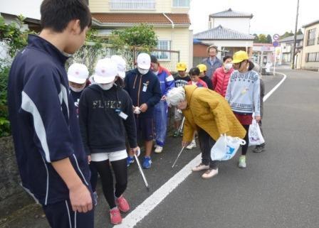 都農神社の広場に集まり、班ごとに自己紹介等の交流をして、それぞれのコースの清掃活動が始まりました。自分たちの住んでいる地域の清掃活動を通して、環境や資源の大切さ、地域への感謝の気持ちなどをもってもらうことや、いろんな学校や年齢をこえて交流することで、協力して活動する楽しさや喜びを感じてもらうねらいがありました。子どもたちはとても楽しそうに交流しながら、ごみ拾いに熱心に取り組んでいました。都農町がきれいになりました。