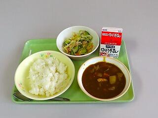 給食デビュー2日目の1年生には、とてもよい献立だなと思いました。カレー自体の辛さは十分抑えられていますし、高学年の児童の中には「大人の辛口」を求める子どももいますが、給食のカレーはとてもおいしいです。