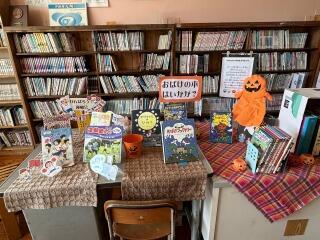 向かって左側に「運動会」に関する本、右側には「ハロウィン」に関する本が並べられています。