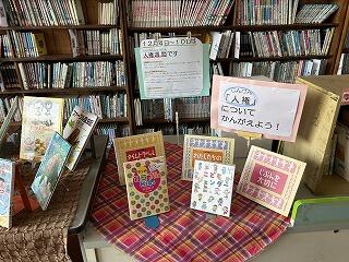 上の写真にあるように、人権週間の紹介や関連本の展示がなされていました。