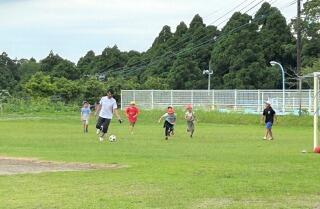 先生と学年の違う子どもたちがサッカーをやってました。遊ぶ時も一生懸命な先生と子どもたちの姿にまた幸せを感じました。