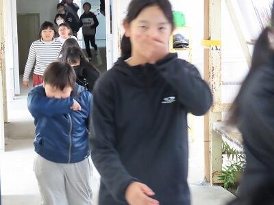 1学期の訓練では、しゃべり声やふざけた態度の児童も見られたのですが、今回は、一人一人真剣に、臨場感のある訓練ができたと思います。