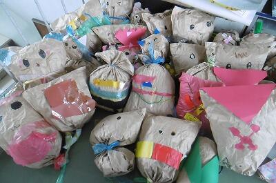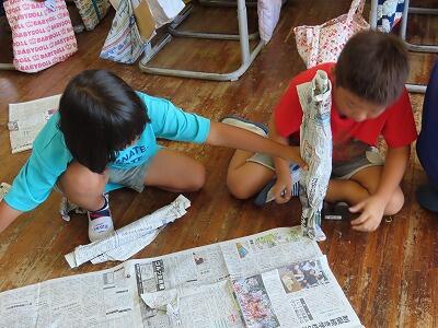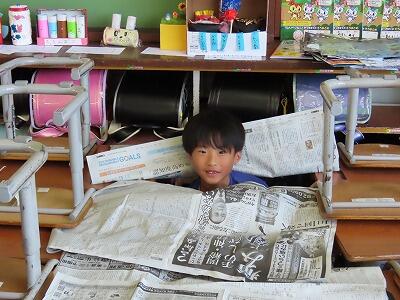 めあて「新聞紙を使って、いろいろな物を作ってみよう」