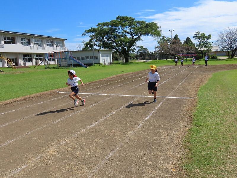 水分補給を十分に行いながら、徒競争の練習(70%の力で)をしていました。
