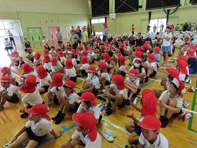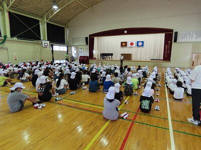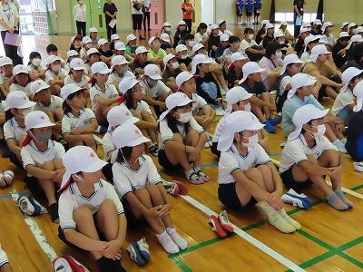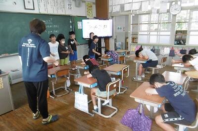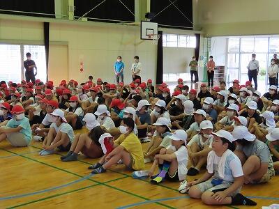 今回の訓練は、余震想定・けが人想定訓練という初の試みでしたが、児童は、放送をよく聞き、真剣な表情で訓練に臨んでいました。
