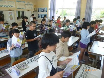 5年2組は、音楽の授業を谷山先生と行っていました。