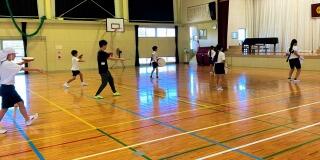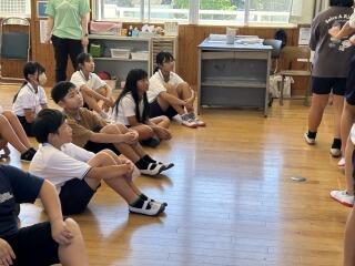 体育館を覗いてみると、大太鼓やパーランクーを手にした6年生の姿がありました。尋ねてみると、6年生は5年生に振付を教えるグループと大太鼓等を練習するグループに分かれて活動していたそうです。