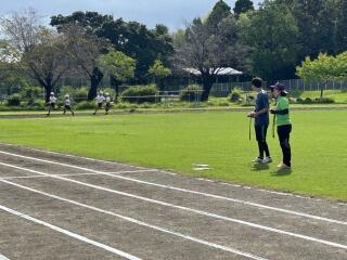 今日の1校時、5年生が運動場でリレー選手を選出するためのタイム測定をしていました。